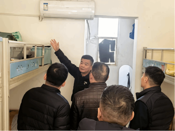 会后,张飙在学院领导班子陪同下,实地调研检查了武术业校的安全管理工作。检查组一行深入学生宿舍区,重点查看了电源切断、空调设施、门窗锁闭、杂物清理、水电设施等安全状况;查阅消防安全相关台账材料,仔细核对消防器材的年检时间与压力状态;了解留校学生训练期间的安全管理细则。他强调,要通过人防、物防相结合的方式,切实消除了潜在隐患,为平安校园提供了坚实保障。