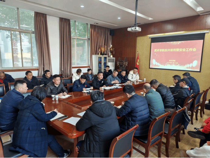 张飙认真听取汇报后,对武术学院在相关工作中付出的努力给予肯定,并就进一步抓实抓细两项工作提出明确要求。他强调,安全工作是学院发展的底线工程,必须时刻绷紧思想之弦,压实各级责任,特别是要紧盯寒假这一关键期,加强对留校学生、宿舍、训练场馆等重点区域和人员的管理与巡查,确保校园绝对安全稳定。他指出,反兴奋剂工作是体育事业的“生命线”,武术学院作为竞技体育特色鲜明的学院,必须站在维护体育精神、维护学校声誉的政治高度,以“零容忍”的态度,持续深化宣传教育,完善全链条监管,加强对运动员、教练员的日常管理和警示教育,坚决筑牢思想与制度防线,确保干干净净参赛、堂堂正正取胜。
