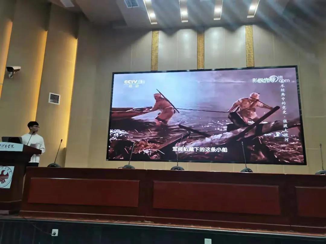 首先,是2019级周俊宇同学带来的《大渡河风云》故事讲述,同学们听在“飞跃大渡河”的故事中,内心震撼、悲愤、感动交加。红一团第一营第2连17名勇士的故事深深震颤着每一位同学的心灵,让在场的所有同学感受到了中国红军坚定的理想信念,不畏牺牲,艰苦奋斗的勇气和决心。