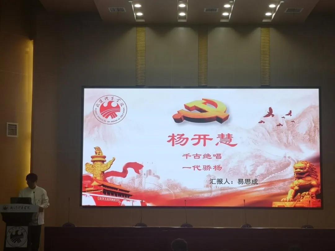 第四位上场的是2020级的易思成同学,他讲述的是《千古绝唱,一代娇杨——杨开慧》的故事,他的声音昂扬,把同学们深深吸引在他的故事中。中国这位伟大的革命先驱,被他讲述地栩栩如生,通过他的讲述,使同学们对杨开慧有了不一样的认识。故事的结尾,易思成在台上深情地讲到“亲爱的祖国啊,亲爱的党,旗帜我们打下去,越打越鲜明;历史我们写下去,越写越灿烂;战歌我们唱下去,越唱越豪迈!让我们世世代代在革命的跑道上,进行一场永不休止的接力赛!”这是武术学子对党,对祖国最真挚的爱。