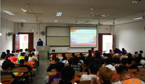 新闻网讯(通讯员 田佳)4月28日下午4时,武术学院2019级在东教学楼403教室召开了全年级劳动节放假安全教育暨阶段性工作总结大会。2019级全体学生参加了会议。会议由辅导员朱雄主持。