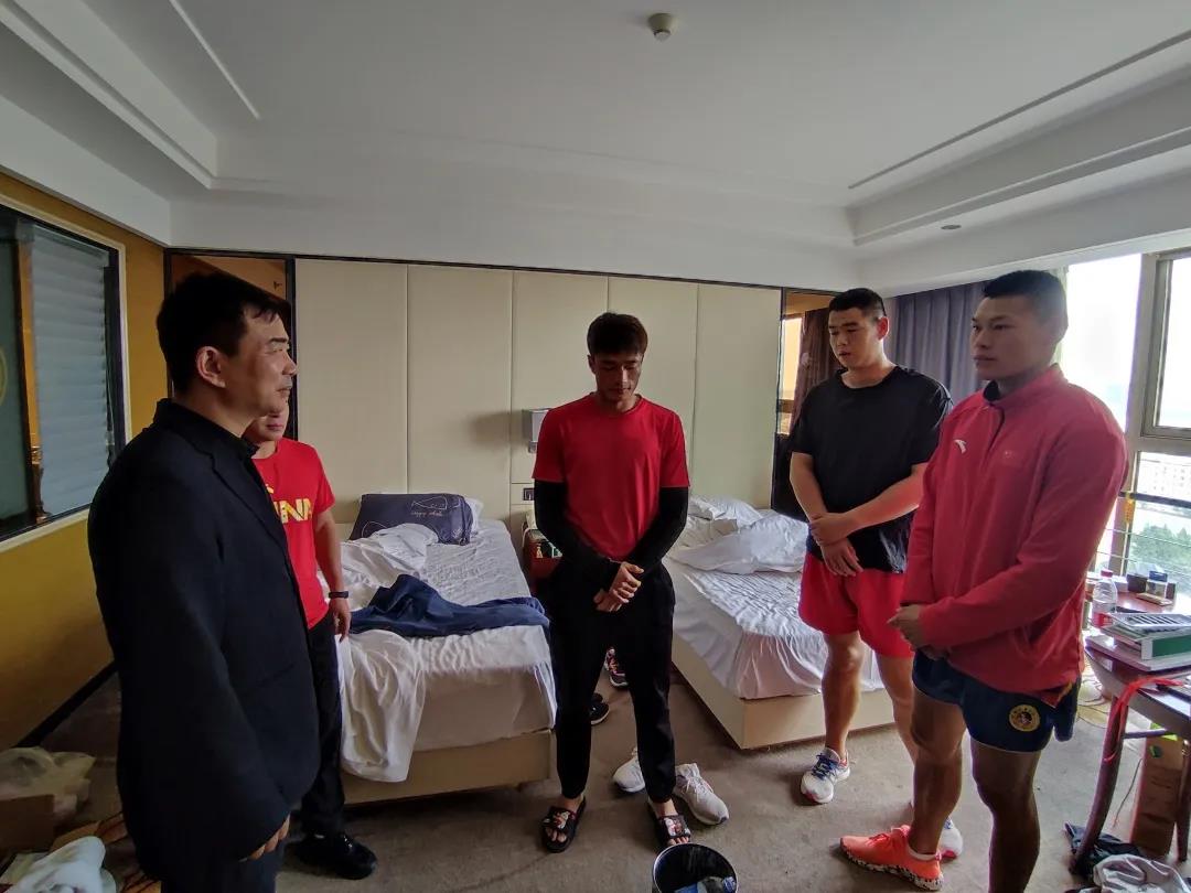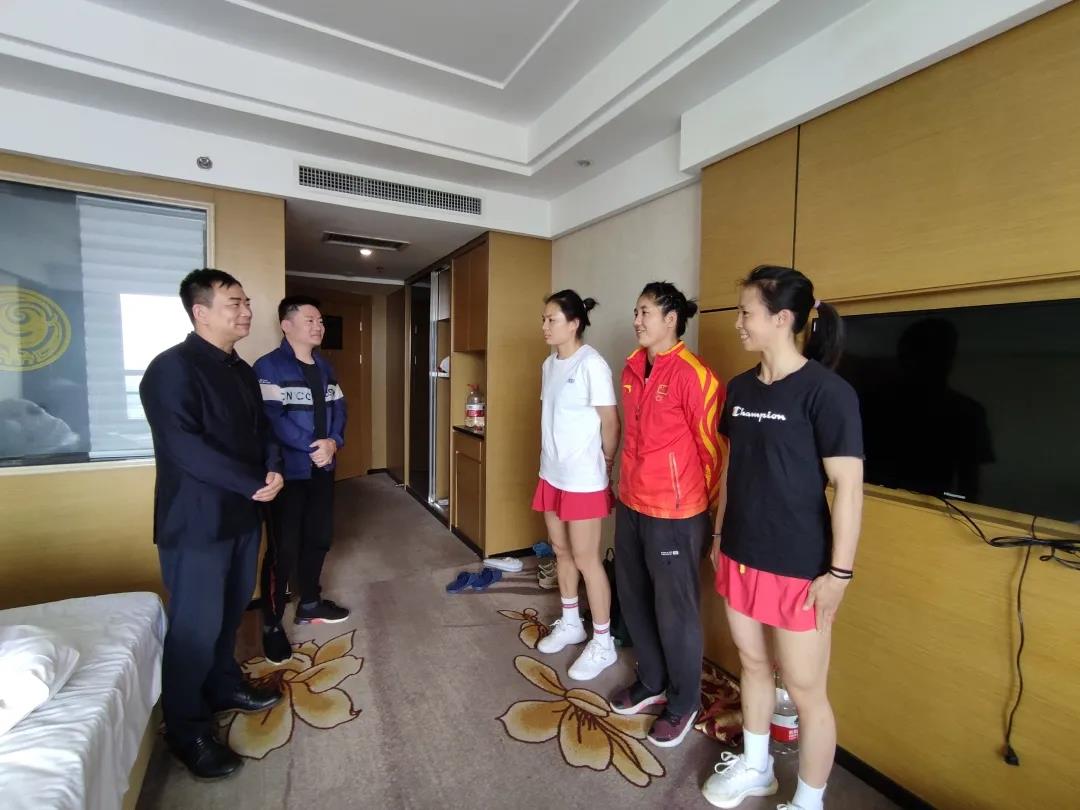 王良明走进赛场和运动员房间,亲切地和运动员、教练员交谈,询问食宿情况和生活需求,并详细了解了运动员们的比赛情况,面对精神抖擞的参赛运动员、教练员,他勉励大家珍惜这次难得的历练机会,强化定力,放下包袱,轻松上阵,放手拼搏。