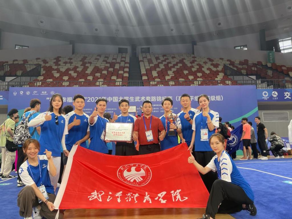 “相约幸福成都”2021年中国大学生武术套路锦标赛于6月23日至28日在四川成都城北体育馆落下帷幕,来自全国68支高校代表队,722名运动员参加。我校武术队共派出9名运动员参加本次赛事(超级组),喜获7金并获体育道德风尚运动队。